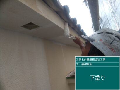 破風板の塗装もまずは下塗りから。