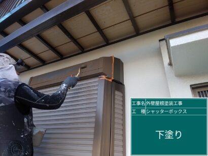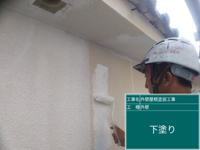 外壁は3回塗りが基本です。接着剤の役目がある下塗り剤をしっかり塗っていきます。