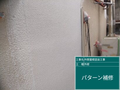 塗装の作業に入っていきます。まずは、壁の補修部分を他の場所と同じ柄に合わせていきます。