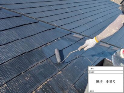 塗装の作業に入っていきます。外壁屋根は3回塗りが基本です。