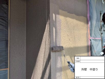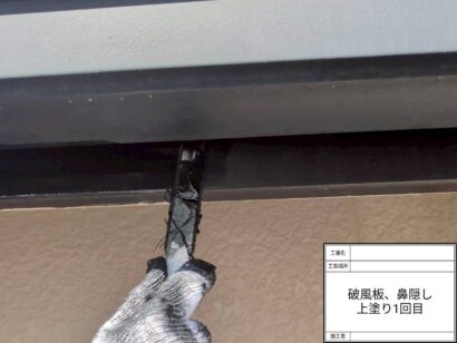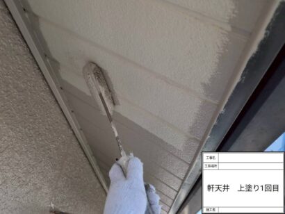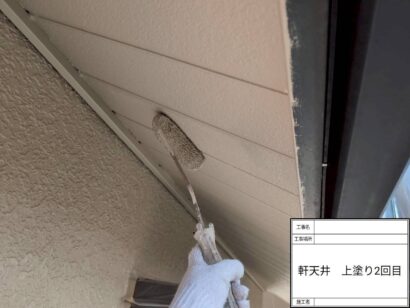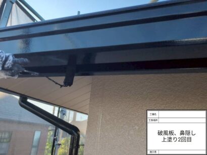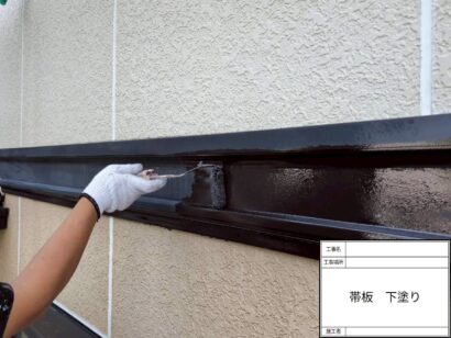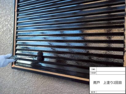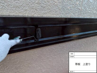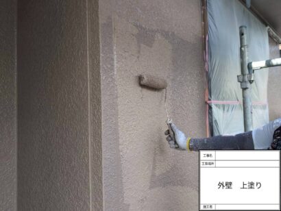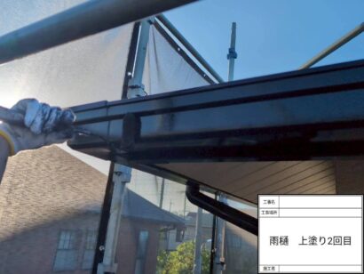 下塗りのあと、上塗りをします。しっかり2回塗り重ねて、美観を長持ちさせます。