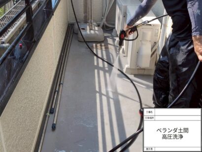 防水塗料を塗る前にしっかりと高圧洗浄します。