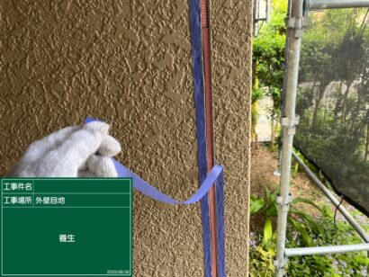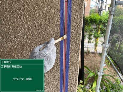 プライマーを塗っていきます。これによって、シーリング材の密着がよくなるので欠かせない作業です。