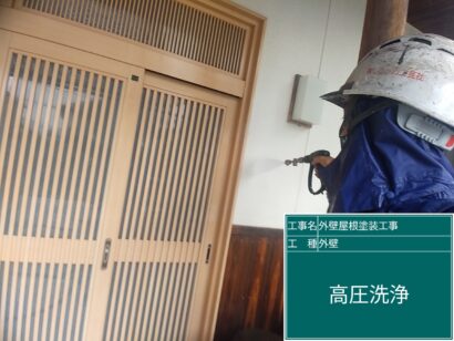 外壁を丁寧に高圧洗浄して汚れを落としていきます。