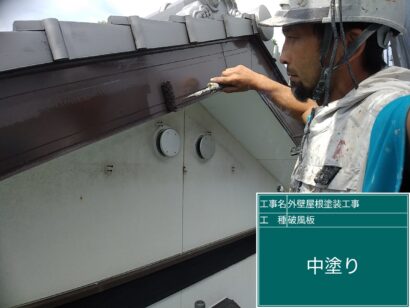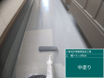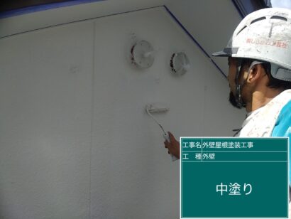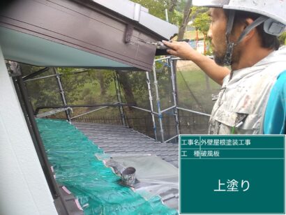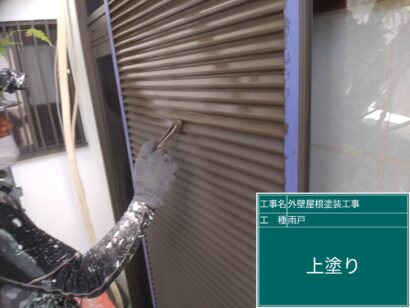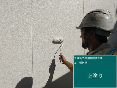 下塗りのあと、上塗りをします。しっかり2回塗り重ねて、美観を長持ちさせます。