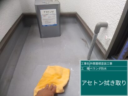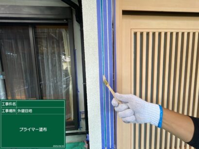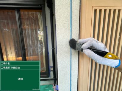 プライマーを塗っていきます。これによって、シーリング材の密着がよくなるので欠かせない作業です。