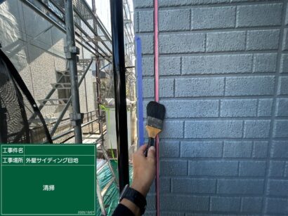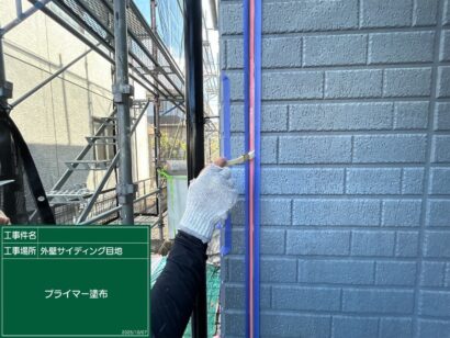 プライマーを塗っていきます。これによって、シーリング材の密着がよくなるので欠かせない作業です。