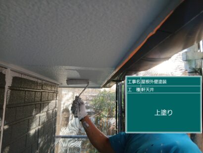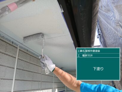 軒天井の塗装です。まずは下塗りから。