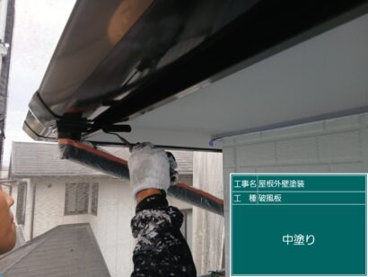 破風板の塗装もまずは下塗りから。