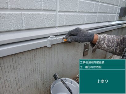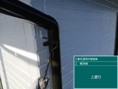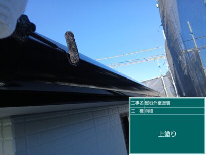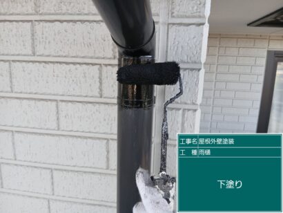 雨といは横雨といと縦雨といがあり、塩化ビニール素材が多く基本2回塗りをします。しっかり目粗ししてから塗装していきます。