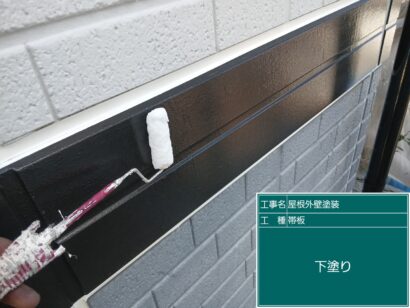 下塗りのあと、上塗りをします。しっかり2回塗り重ねて、美観を長持ちさせます。