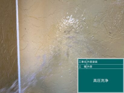 外壁を丁寧に高圧洗浄して汚れを落としていきます。
