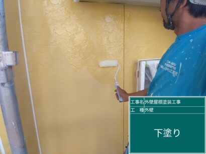 まずは、接着剤の役目がある下塗り剤をしっかり塗っていきます。
