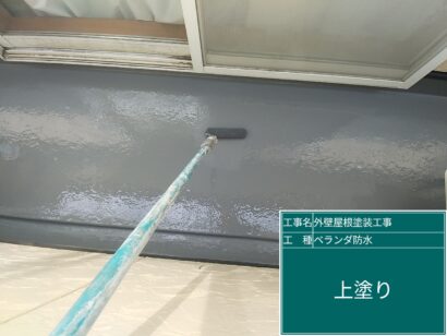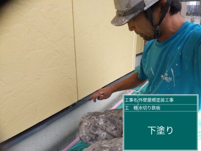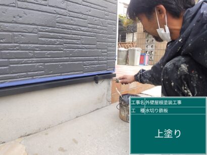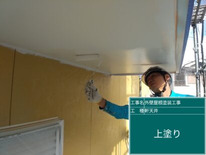 下塗りのあと、上塗りをします。しっかり2回塗り重ねて、美観を長持ちさせます。