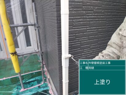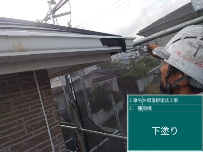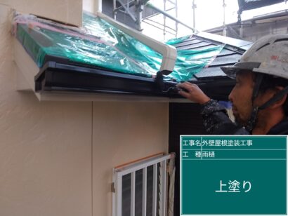 雨といは横雨といと縦雨といがあり、塩化ビニール素材が多く基本2回塗りをします。しっかり目粗ししてから塗装していきます。