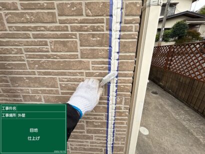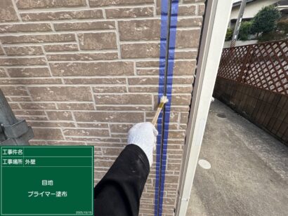 プライマーを塗っていきます。これによって、シーリング材の密着がよくなるので欠かせない作業です。
