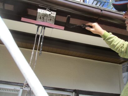 上塗りで仕上げます。新しい外壁の色に合って、きれいになりました!