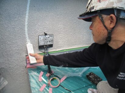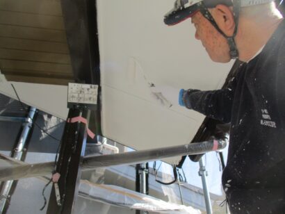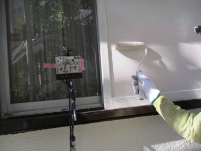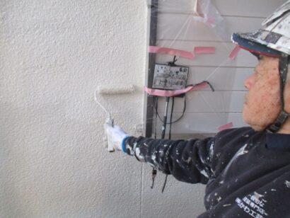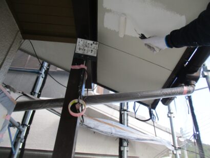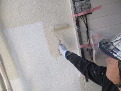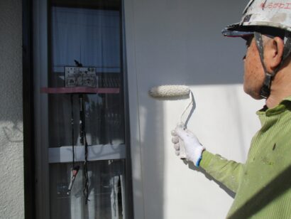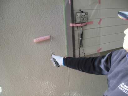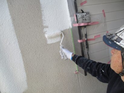 下塗りのあと、上塗りをします。しっかり2回塗り重ねて、美観を長持ちさせます。