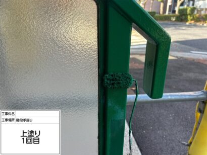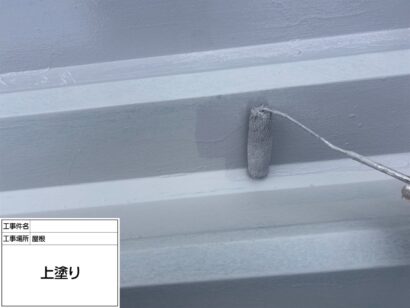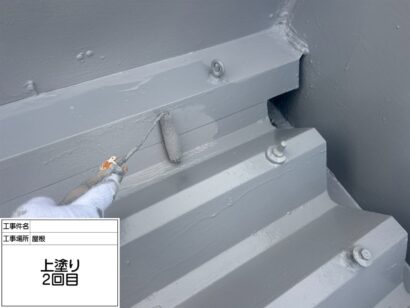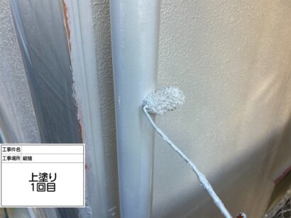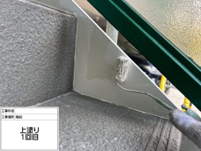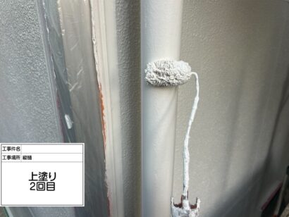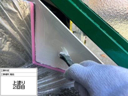 下塗りのあと、上塗りをします。しっかり2回塗り重ねて、美観を長持ちさせます。