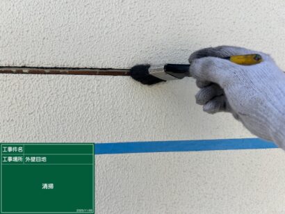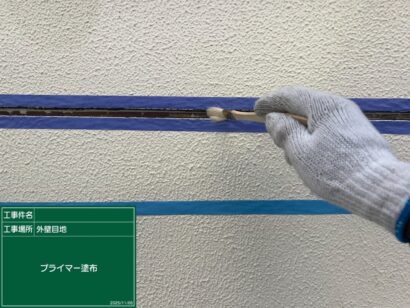 プライマーを塗っていきます。これによって、シーリング材の密着がよくなるので欠かせない作業です。