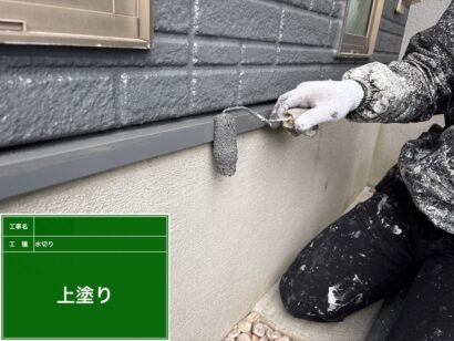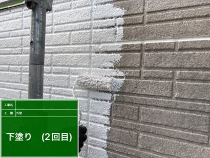 塗装の作業に入っていきます。外壁は3回塗りが基本ですが、このお家は外壁の一部を4回塗りにしました。