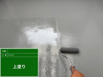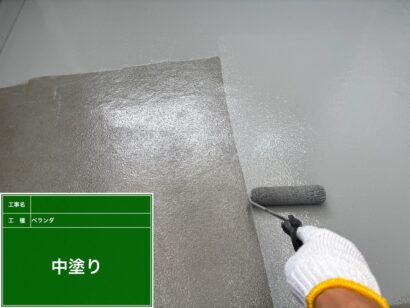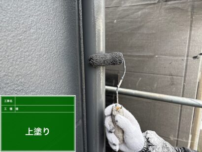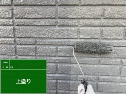 下塗りのあと、上塗りをします。しっかり2回塗り重ねて、美観を長持ちさせます。