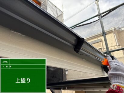 雨といは横雨といと縦雨といがあり、塩化ビニール素材が多く基本2回塗りをします。しっかり目粗ししてから塗装していきます。