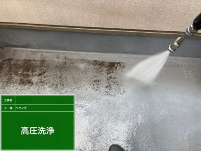 防水塗料を塗る前にしっかりと高圧洗浄します。