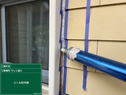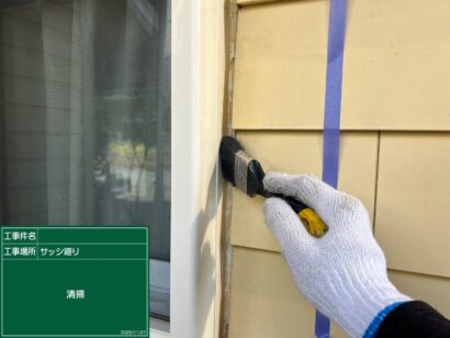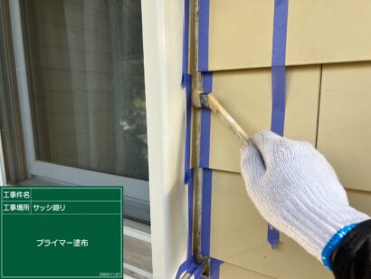 プライマーを塗っていきます。これによって、シーリング材の密着がよくなるので欠かせない作業です。