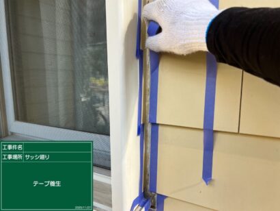 周りが汚れないようにテープで養生します。