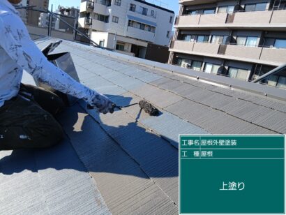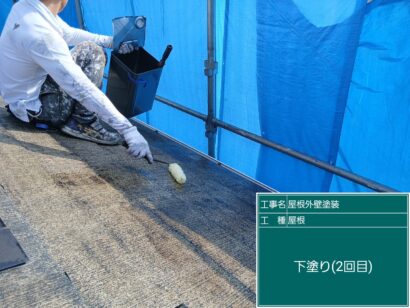 屋根も外壁と同じく3回塗りが基本ですが、このお家は下塗りを2回しました。お家の状態に合わせて塗装します。