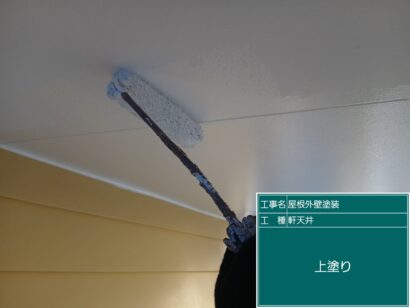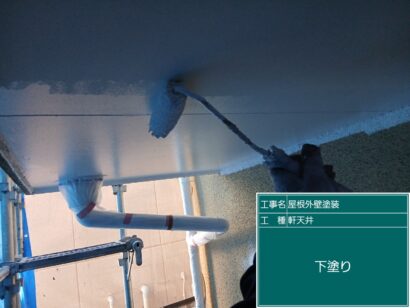 軒天井の塗装です。まずは下塗りから。