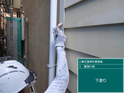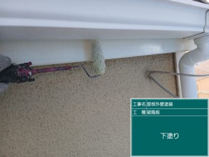破風板の塗装もまずは下塗りから。