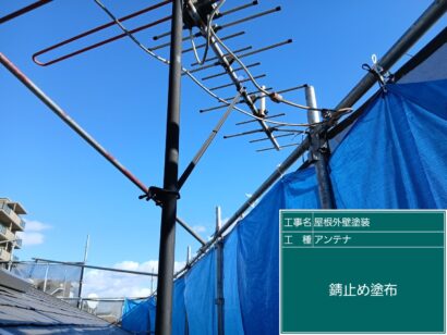 アンテナまでしっかり塗ります。まずはさび止めを塗って、下塗りへ。