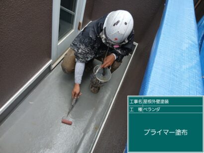 続いて下塗り、プライマー塗布を塗布します。