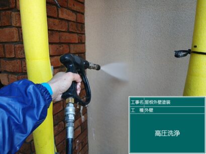 外壁を丁寧に高圧洗浄して汚れを落としていきます。
