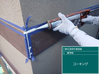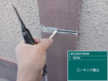 帯板のコーキングが劣化していたので新しくします。まず、既存の古いコーキングを撤去します。