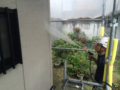 高倉町のH様宅を塗装しておられますのを見まして、日頃からH様とは懇意にして頂いておりましたので尋ねたことから、御社にお願い致しました。