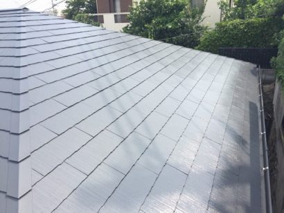 上塗りまで終えた屋根は 太陽の光を浴びて