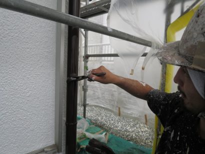 塗料の密着性を高めるため たっぷりと下塗り剤を塗っていきます。