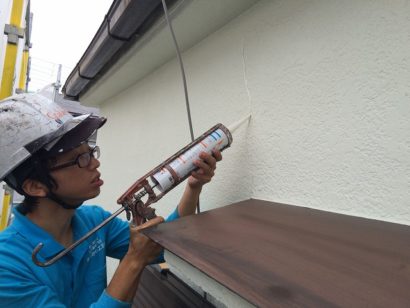 ひび割れ箇所は コーキング剤でキッチリ補修していきます!