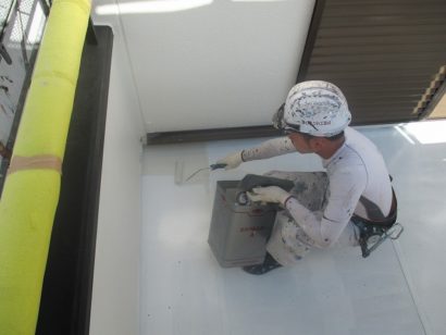 ベランダ防水上塗り 塗り残し箇所がないように注意して ていねいに仕上げていきます!