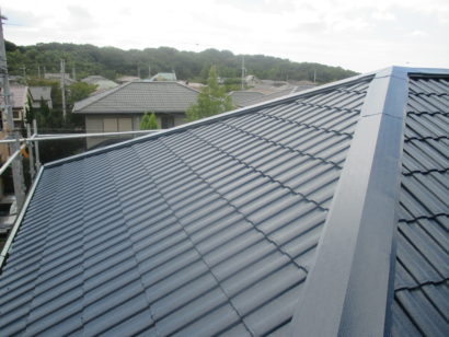 上塗りまで終えた屋根は 輝いています♪ 太陽の光や雨風を一番うける屋根は 傷みが一番顕著にでる箇所。3度塗り重ねることで経年劣化で痩せてしまっていた塗膜も膜厚をとりもどしましたよ♪