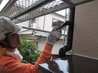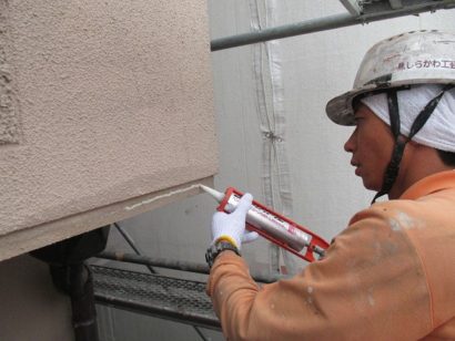 キッチリとコーキング剤で補修してから塗っていきますよ!