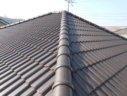 上塗りまで終えた屋根は 太陽の光を浴びて