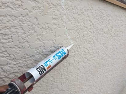 キッチリとコーキング剤で補修してから塗っていきますよ!