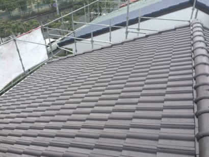 上塗りまで終えた屋根は 太陽の光を浴びて