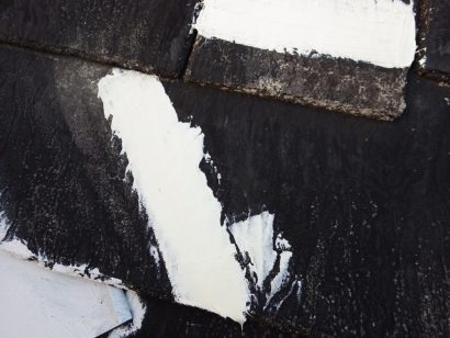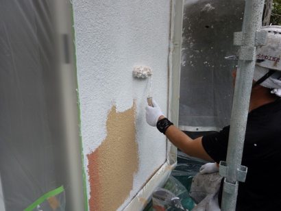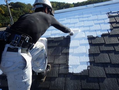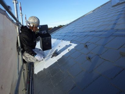 屋根も外壁と同様 たっぷりと下塗り剤を塗っていきます。