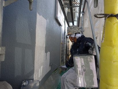 中塗りと上塗りとでは 塗料の色をかえて塗っていきますよ!