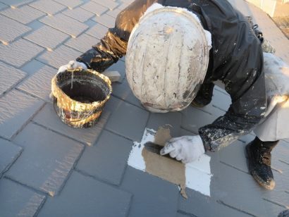 雨漏りの原因となりうるひび割れ箇所は 水がまわらないように パテで キッチリと補修しました~♪